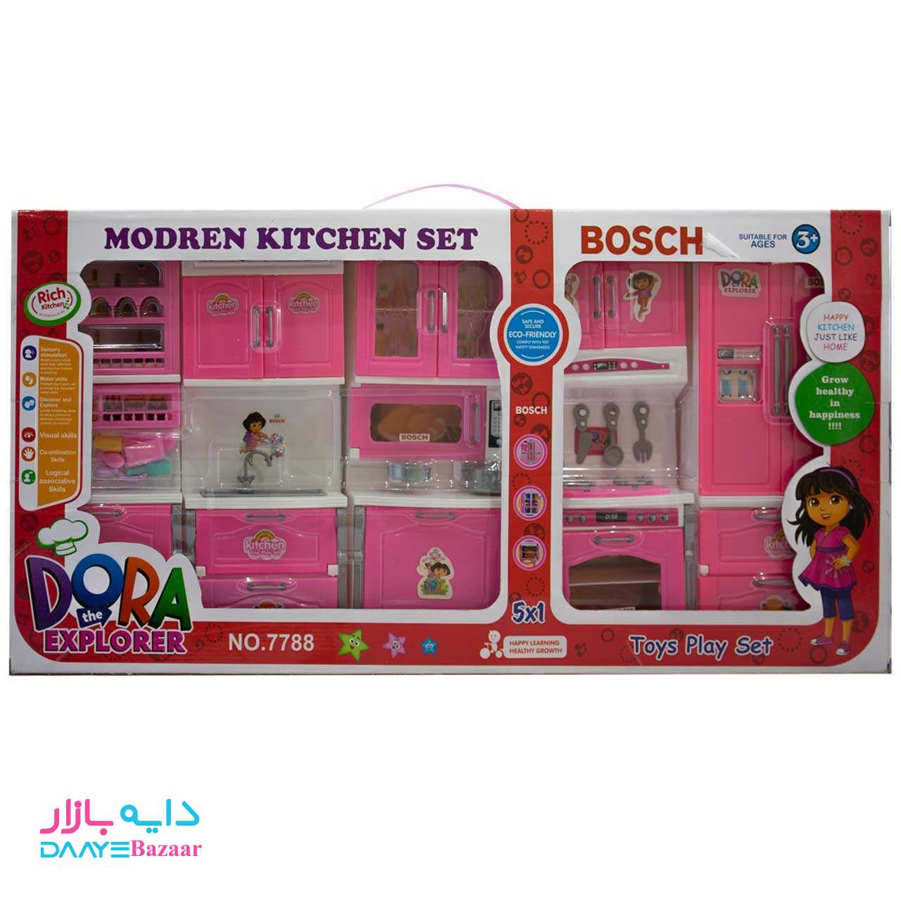 دارای ۳۲ قطعه سرویس شامل :آشپرخانه ،ملاقه ، کفگیر ، قوری ، ماهی تابه ، قابلمه ، پارچ (از هر کدام ۱ عدد) ، چاقو (۴ عدد) ، قاشق (۴ عدد ) چنگال (۴ عدد) بشقاب (۴ عدد) فنجان ( ۴ عدد ) نعلبگی (۴عدد) می باشد. رده سنی :3الی 8 سال کالای ایرانی