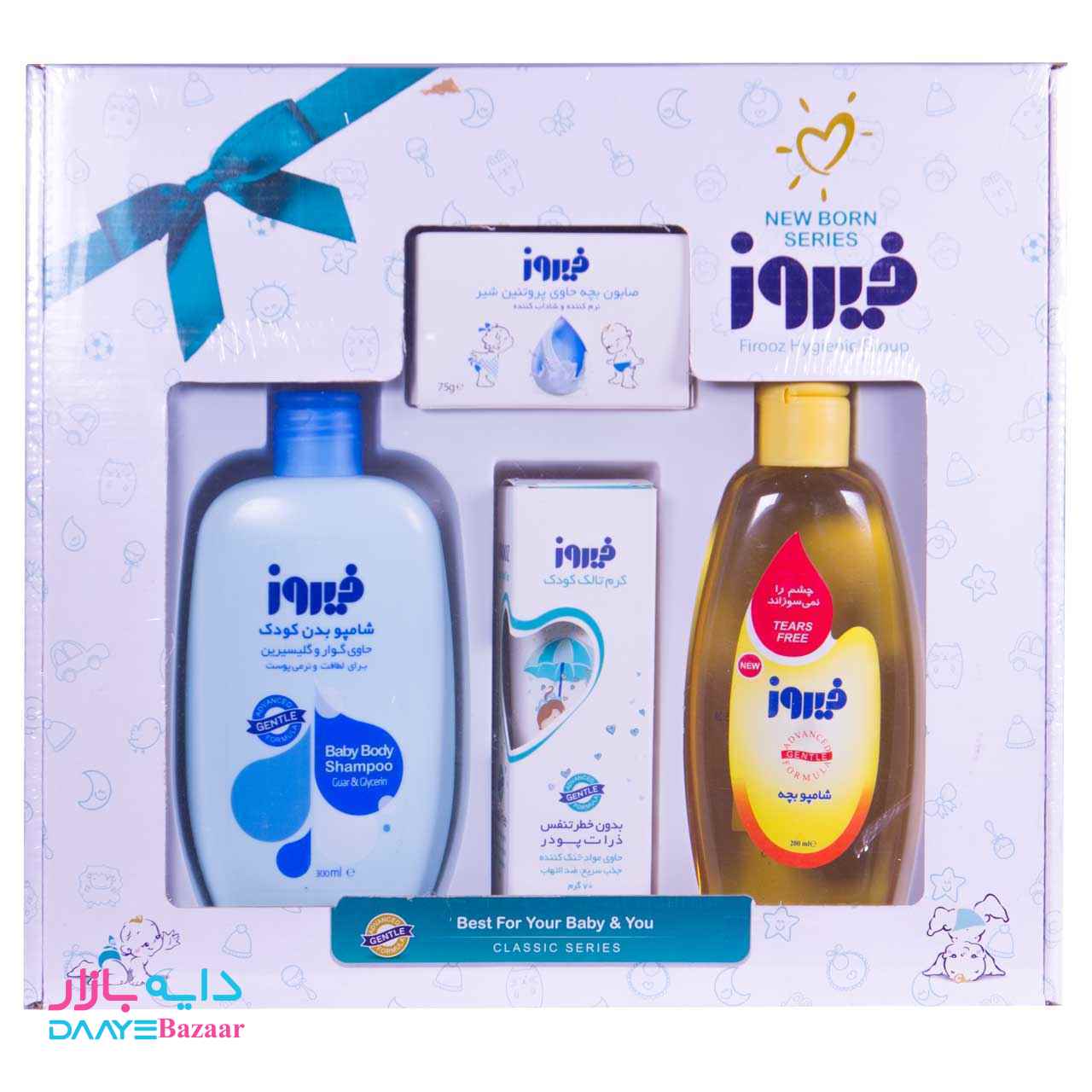 ست4 تکه جعبه هدیه کلاسیک محصولات بهداشتی کودک فیروز