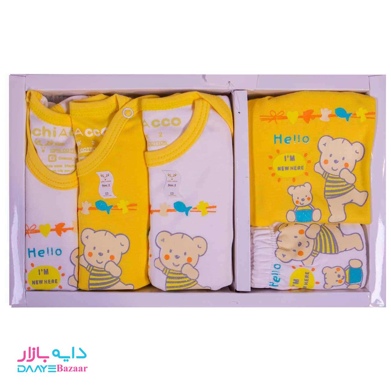 اگر قصد خرید یک ست لباس برای فرزندتان را دارید ما به شما ست لباس نوزادی 5 تکه چیاکو را پیشنهاد می کنیم که دارای طرح های بسیار مناسب و زیبا و در رنگبندی های مختلف از جمله زرد ، صابونی ، طوسی ، آبی ارائه شده است.