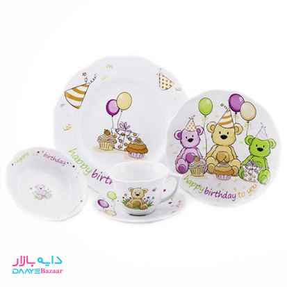 سرویس غذاخوری چینی کودک طرح تولد خرس رده سنی:6ماه الی 5 سال کالای ایرانی