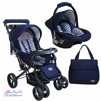 اقلام ست کالسکه شامل: ساک لوازم کودک، کالسکه، کریر، تشک رورئک
